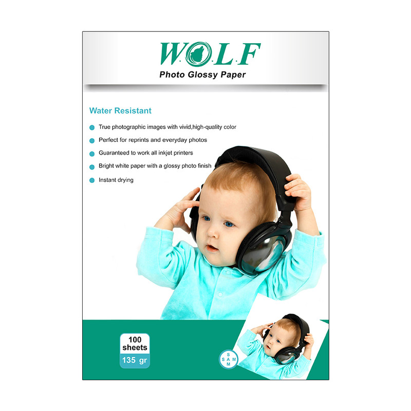 اگر یک پرینتر خانگی داشته باشید، میتوانید سوژههایی که با تلفن همراه یا دوربینهای حافظهدار عکاسی کردهاید را روی کاغذ فتوگلاسه «ولف»(Wolf) چاپ کنید و از کیفیت آن نهایت رضایت را داشته باشید. ولف شامل 100 عدد کاغذ 150 گرمی است؛ این تعداد کاغذ میتواند هم مقرونبهصرفه باشد و هم تا مدتی طولانی شما را از خرید کاغذ بینیاز کند. ولف سطحی صیقلی و براق دارد و عکسها را با بهترین کیفیت به شما ارائه خواهد نمود. کاغذ فتوگلاسهی ولف برای پرینترهای جوهرافشان مناسب است. کاغذ ولف ضد آب است و اگر احیاناً مرطوب شد جای نگرانی وجود ندارد. هر بسته کاغذ 29.7 سانتیمتر طول و 21 سانتیمتر عرض دارد. مکانهایی مثل مراکز سیتیاسکن، آتلیههای عکاسی و دفاتر فنی، بیشترین سر و کار را به این نوع کاغذها دارند و به همین دلیل باید به کیفیت آن توجه کنند؛ پس ما کاغذ فتوگلاسه 135 گرمی ولف سایز A4 را به شما پیشنهاد میکنیم.