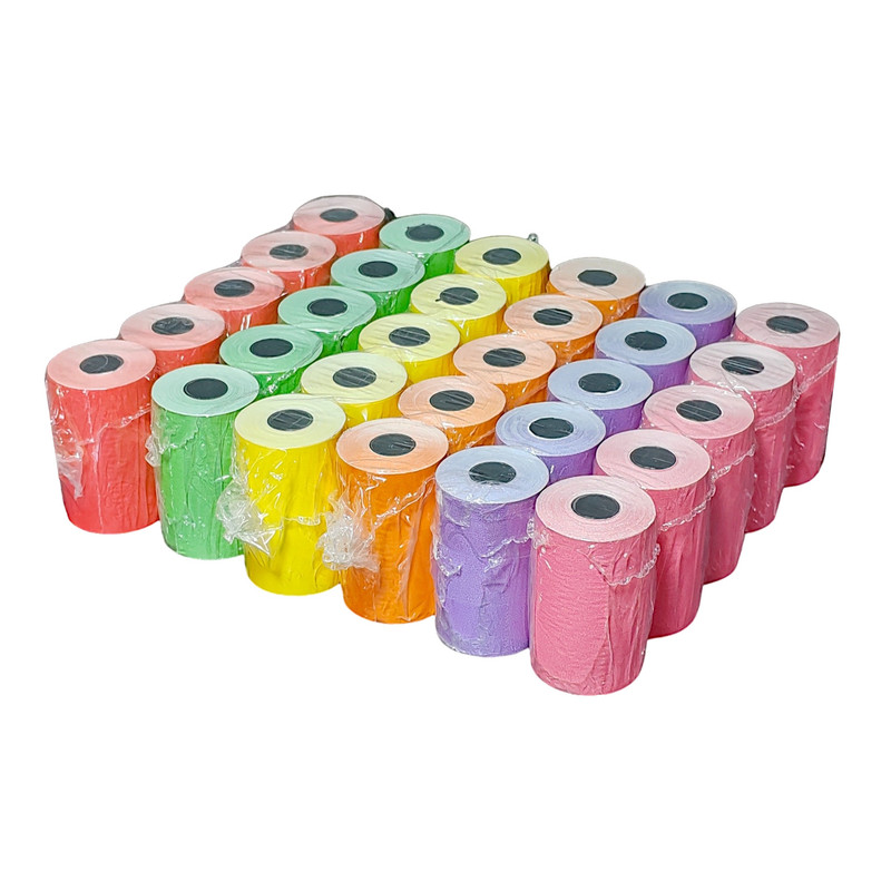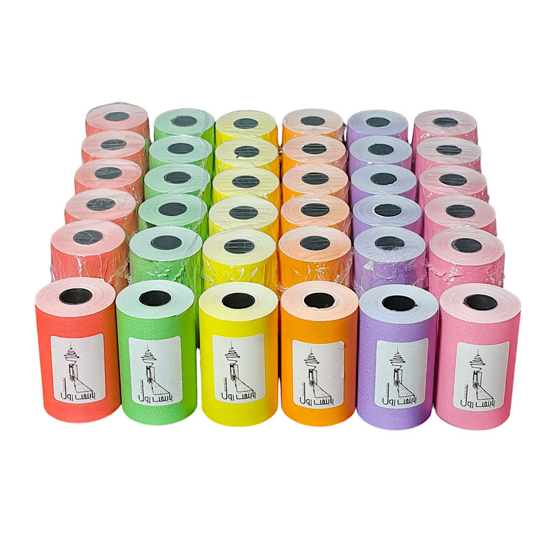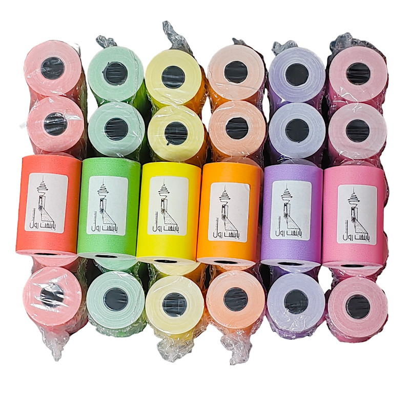 رول حرارتی پوز چندرنگ (قرمز، سبز، زرد، نارنجی، بنفش، صورتی) پایتخت رول، بدون چاپ در پشت رول، عرض 57 میلی متر، متراژ 14 متر، مخصوص دستگاه های پوز و کارتخوان، کاغذ هانسول کره جنوبی، رنگ کاغذ شامل رنگ های قرمز، سبز، زرد، نارنجی، بنفش، صورتی، رنگ چاپ مشکی، 55 گرم در هر متر مربع (گرماژ)، تعداد 30 عدد در پکیج فروش، بسته بندی به صورت 5 تایی شیرینگ، ماندگاری چاپ 3 سال، کیفیت بالای کاغذ و برش عالی و بدون پرز