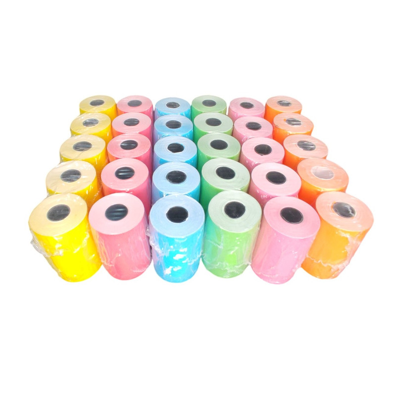 هشت رنگ رول پرینتر حرارتی موجود است که با توجه به موجودی کالا، ۶ رنگ از ۸ رنگ ارسال خواهد شد و رنگهای ارسالی براساس رنگهای موجود است. رول حرارتی چندرنگ پایتخت رول (۶ رنگ از ۸ رنگ موجود)، بدون چاپ در پشت رول، عرض ۵۷ میلی متر، متراژ 14 متر، مخصوص دستگاه های پوز و کارتخوان، کاغذ هانسول کره جنوبی، رنگ زمینه کاغذ شش رنگ از هشت رنگ زرد، آبی، سبز، صورتی، نارنجی، بنفش، قرمز و یا سفید (مطابق عکس)، رنگ چاپ مشکی، ۵۵ گرم در هر متر مربع (گرماژ)، تعداد ۳۰ عدد در پکیج فروش، بسته بندی به صورت ۵ تایی شیرینگ، ماندگاری چاپ ۳ سال، کیفیت بالای کاغذ و برش عالی و بدون پرز