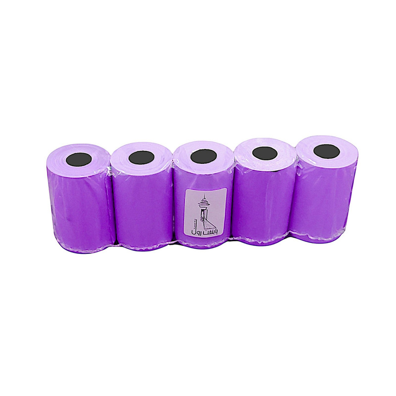 رول حرارتی پوز بنفش پایتخت رول، بدون چاپ در پشت رول، عرض ۵۷ میلی متر، مخصوص دستگاه های پوز و کارتخوان، رنگ کاغذ بنفش، رنگ چاپ مشکی، تعداد 5 عدد در پکیج فروش، کیفیت بالای کاغذ و برش عالی و بدون پرز، دارای لیبل اصالت کالای پایتخت رول