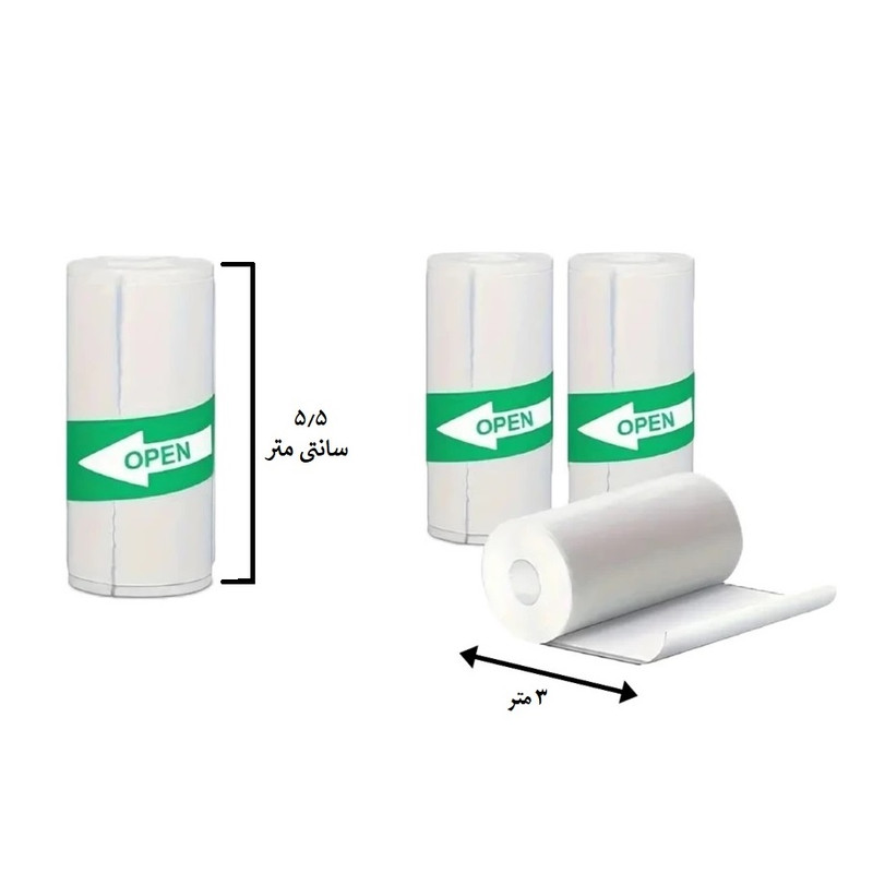 رول کاغذ پرینتر حرارتی مدل پشت چسبدار پایتخت رول بسته 10 عددی، عرض 55 میلی متر، متراژ 3 متر، مخصوص دستگاه های خرگوشی و مینی پرینتر و چاپگر بلوتوثی، کاغذ حرارتی با کیفیت بالا، رنگ کاغذ سفید، رنگ چاپ مشکی، تعداد 10 تا عدد در پکیج فروش، ماندگاری چاپ ۳ سال، کیفیت بالای کاغذ و برش عالی و بدون پرز