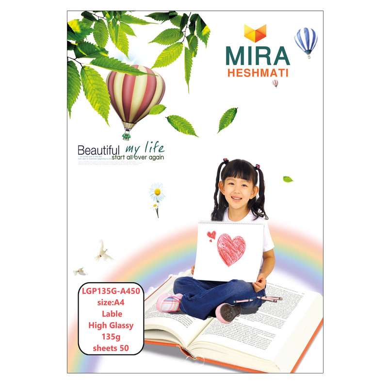 کاغذ پشت چسبدار فتوگلاسه جوهرافشان میرا مدل LGP135G-A450 سایز A4 بسته 50 عددی