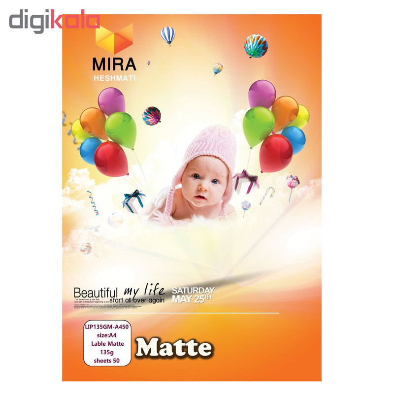 کاغذ پشت چسبدار مات جوهرافشان میرا مدل LIP135GM-A450 سایز A4 بسته 50 عددی