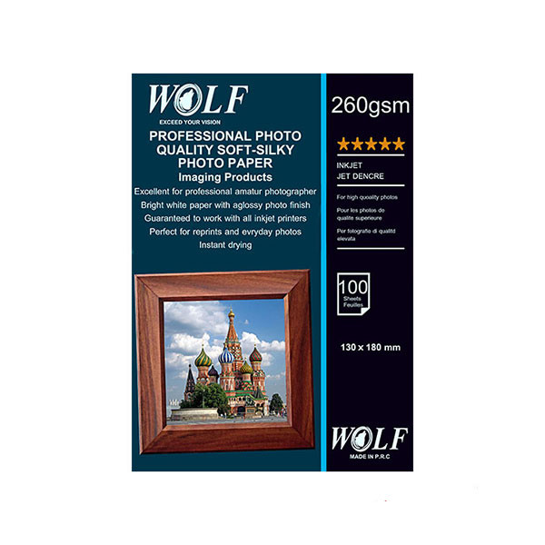 کاغذ چاپ عکس سافت سیلک ولف مدل Professinol-260g سایز 13×18 سانتی متر بسته 100 عددی