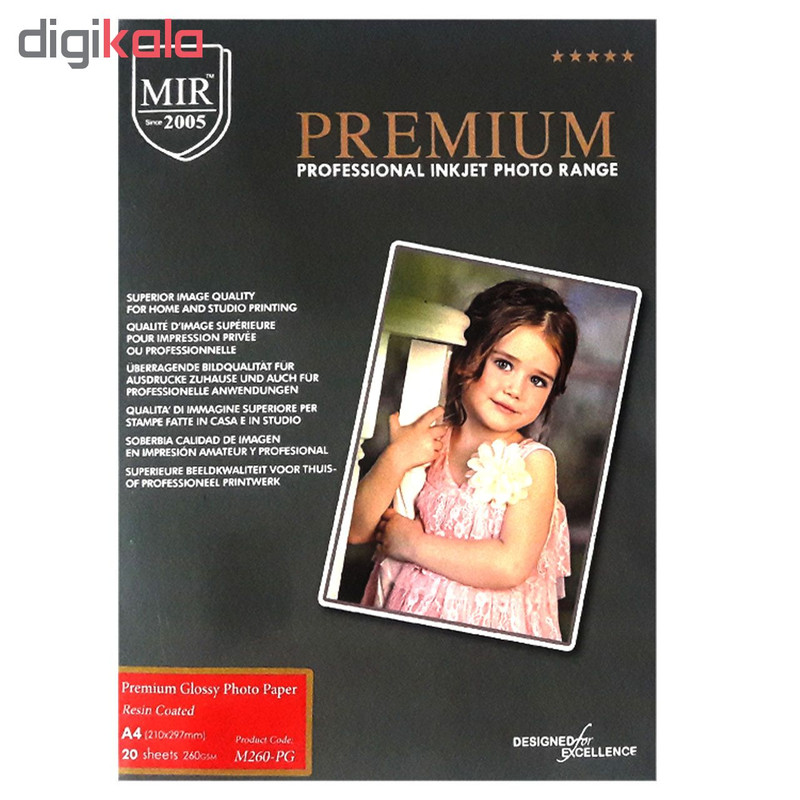 کاغذ چاپ عکس فتوگلاسه براق میر مدل M260-PG-A4 سایز A4 بسته 20 عددی