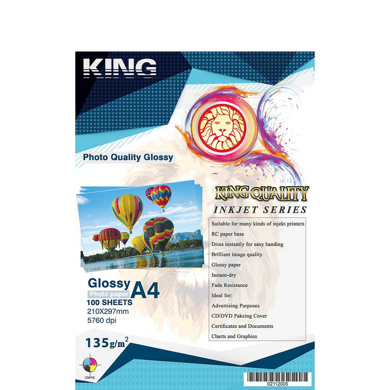 کاغذ چاپ عکس گلاسه کینگ مدل 135 گرمی سایز َA4 بسته 100 عددی