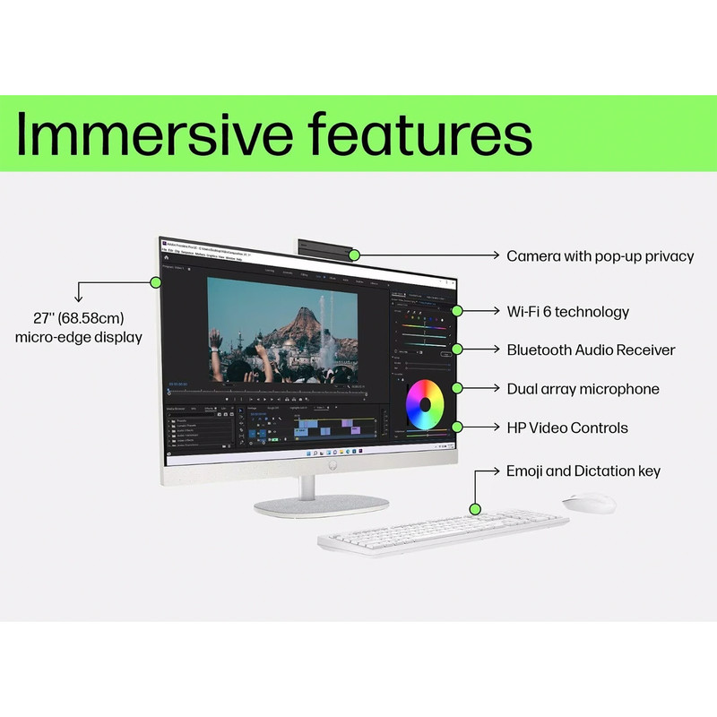 کامپیوتر همه کاره 27 اینچ اچ پی مدل CR0153nh با پردازنده Core i7 1355U رم 32 گیگابایت از نوع DDR4 حافظه داخلی دو ترابایت SSD کارت گرافیک Iris Xe (integrated) نمایشگر از نوع IPS