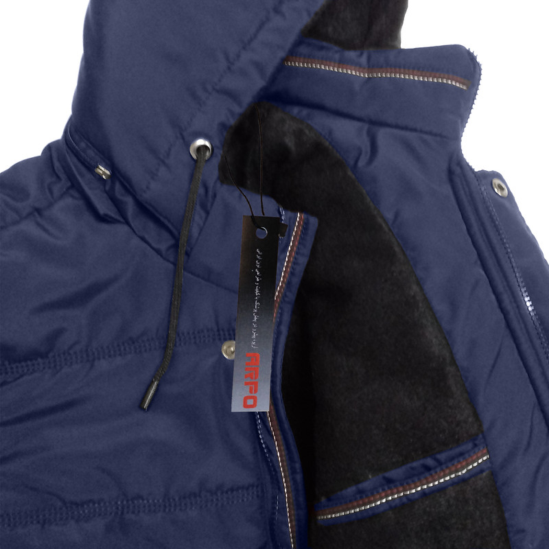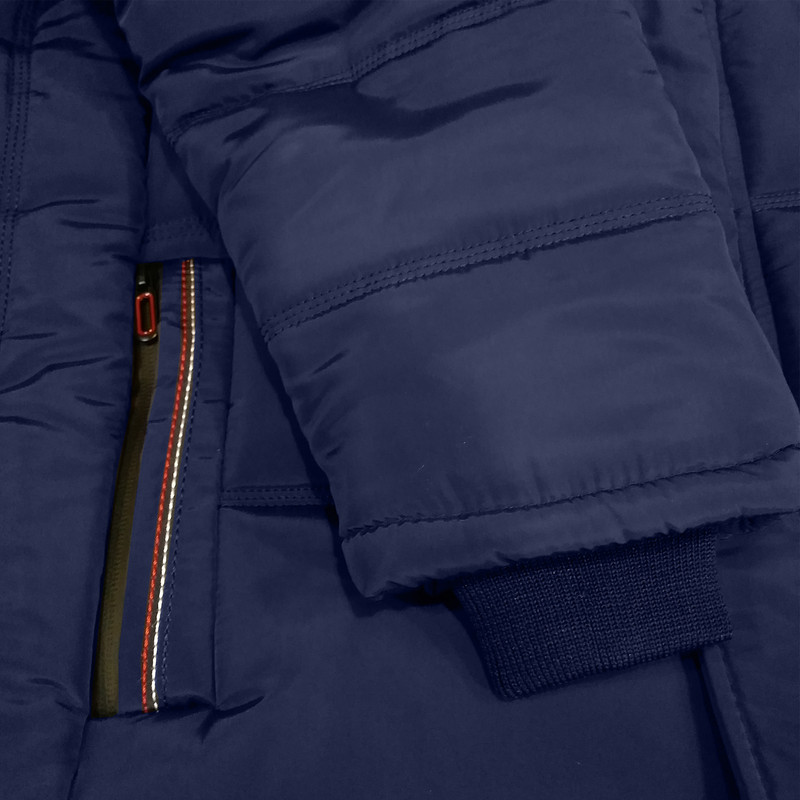 جنس رویه کاپشن از پارچه مموری است که ضخیم و ضد آب به رنگ سرمه ای می باشد.