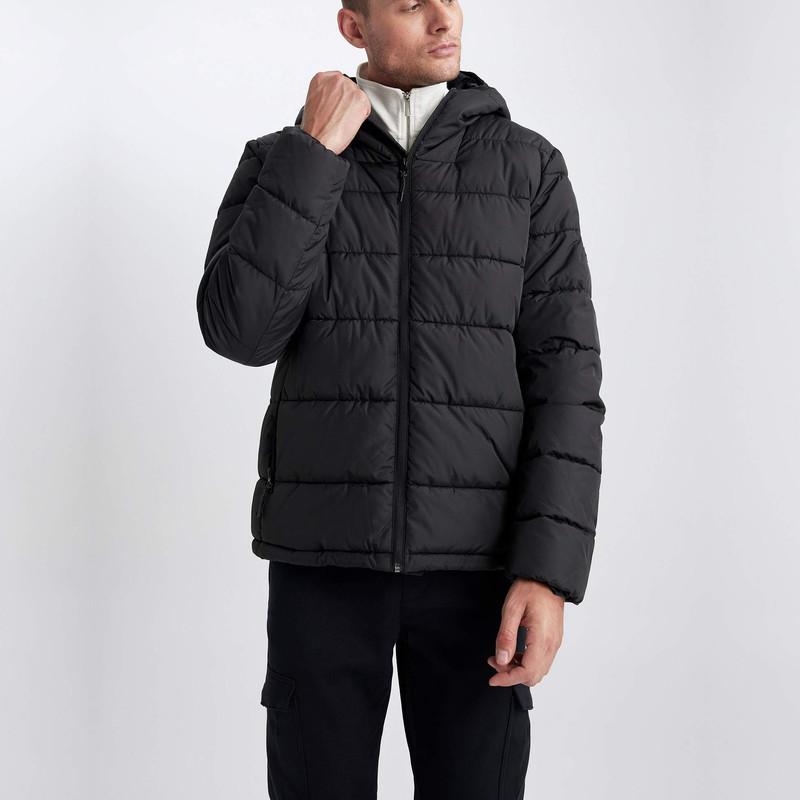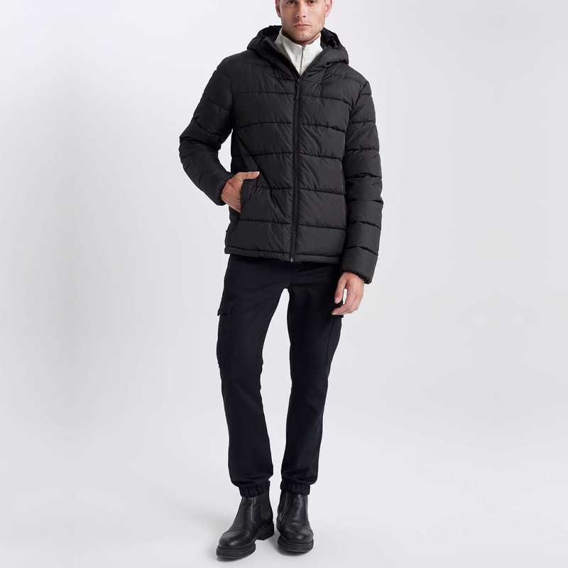 این کاپشن مردانه به رنگ مشکی و فرم معمولی است