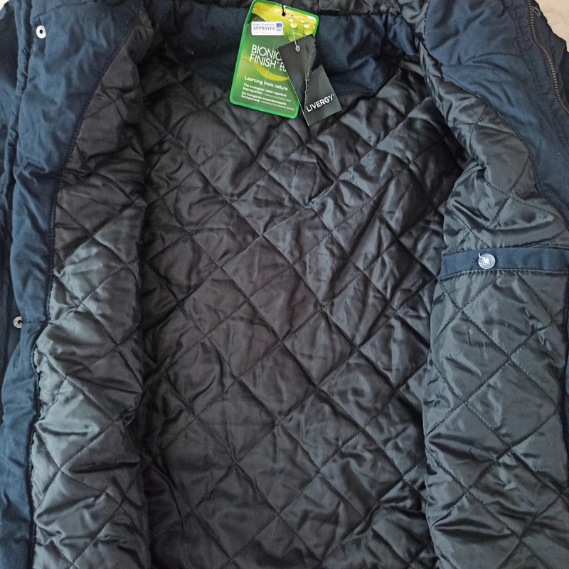 کاپشن مردانه برند آلمانی لیورجی ،رويه بيروني كاپشن 100٪كتان استر كاپشن 100٪پلي استر هست و لايه داخلي كاپشن پلي استر ميباشد و خاصيت BIONIC FINISH ECO دارد يعني با وجود كتان بودن رويه بيروني ضد آب هست و در ضمن ضد لايه محافظ ضد باد دارد.دارای دو جیب بیرون کاپشن و یک جیب داخل،بند تنظیم سایز کلاه بسیار گرم و با کیفیت