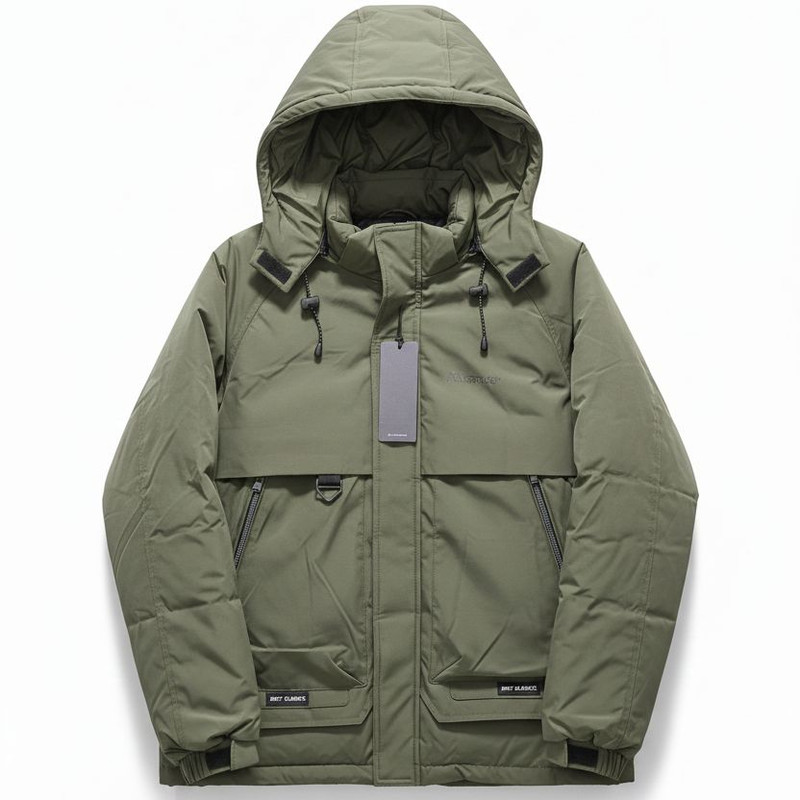 خشک کردن: کاپشن را پس از شستشو آویزان کنید و اجازه دهید در دمای اتاق و دور از نور مستقیم خورشید یا حرارت زیاد خشک شود. از خشککن چرخشی (Tumble Dryer) استفاده نکنید.