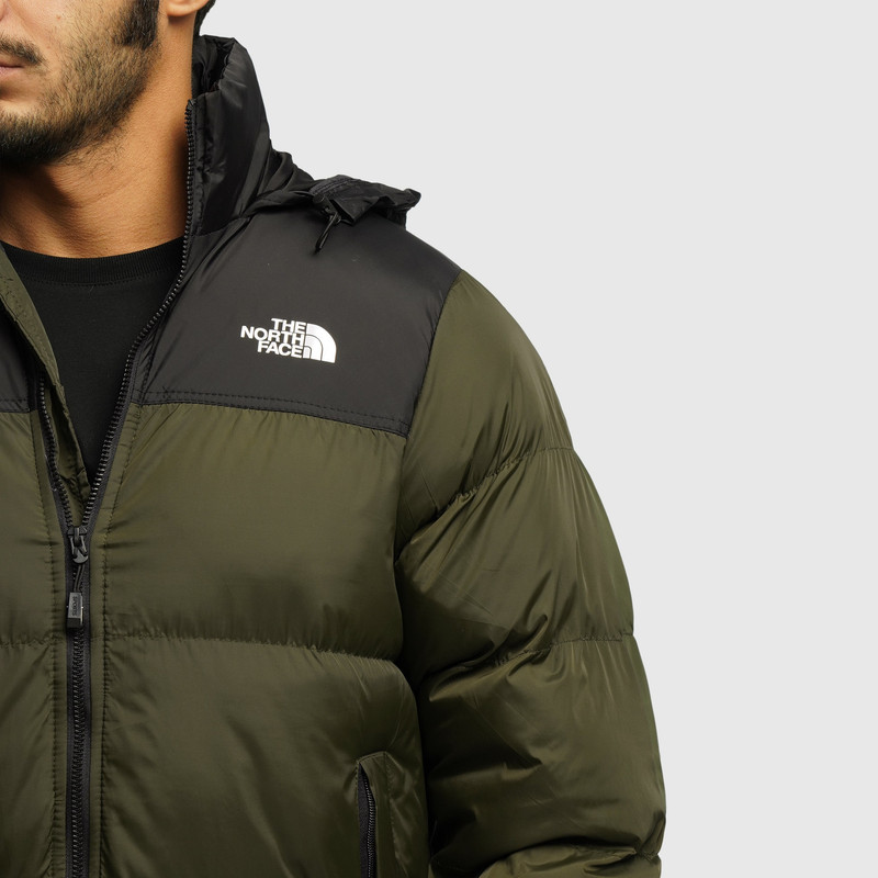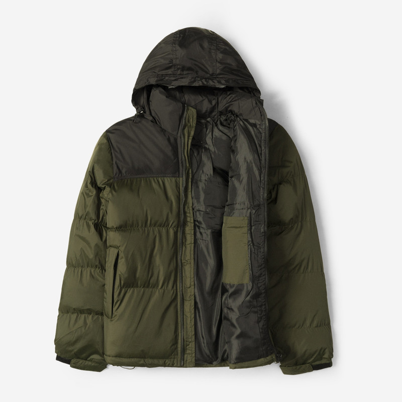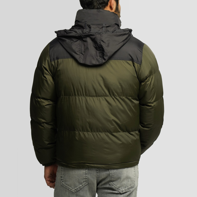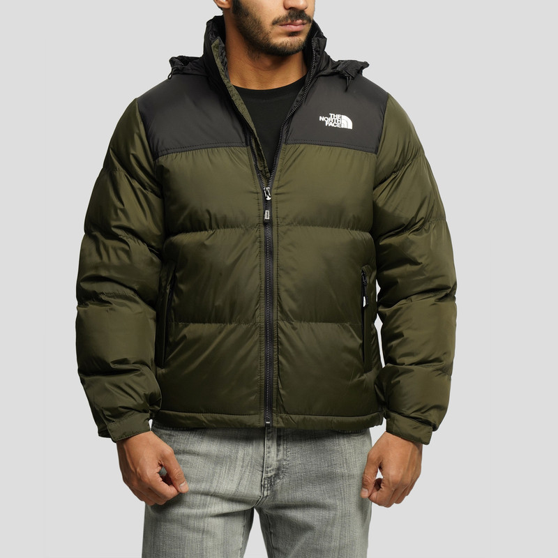 کاپشن مردانه دورنگ کلاه دار در رنگ سبز ، دارای دو جیب کناری زیپ دار و یک جیب داخلی، شیک و اسپرت (رنگ سبز)