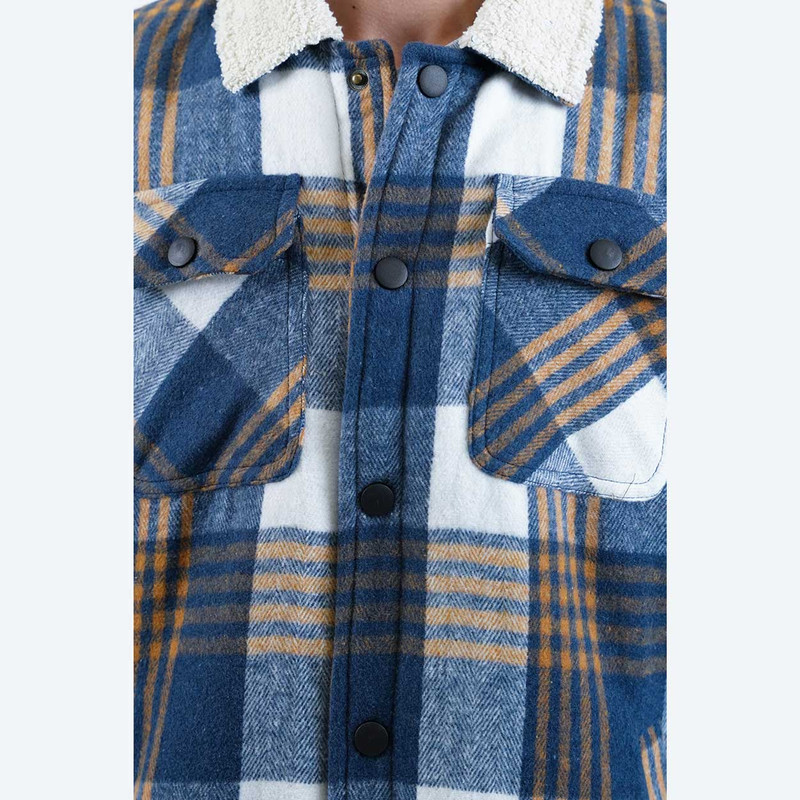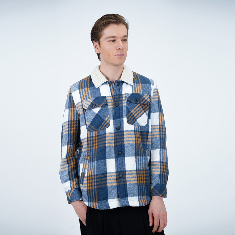 استایل معمولی قواره آزاد / دارای یقه برگردان تدی / دارای دو جیب جانبی / دو جیب در جلو / رنگ آبی .