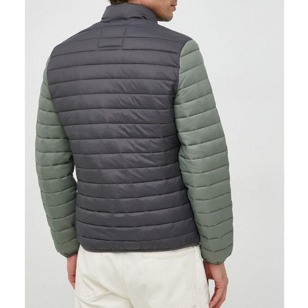 کاپشن پافر برند پپه جینز PEPE JEANS انگلستان مدل PM402668 دارای فن آوری و تکنولوژی (WATER REPELLENT FABRIC) دافع آب بوده .تهیه شده از : رویه ۱۰۰% پلی آمید ضد آب لایه داخلی پشم شیشه عایق سبک ضد نفوذ باد و سرما لایه داخلی 100% پلی استر بوده.این کاپشن دارای رنگ زیبای زغالی و آستین های سبز رنگ میباشد و با زیپ باز و بسته شده همچنین دارای دو جیب مخفی داخلی و دو جیب دکمه پرسی بیرونی از پهلو کاپشن میباشد کاپشن برای حفظ بهتر دما بدن و همچنین عایق بودن دارای نواره کشسان در پایین کاپشن و سر آستین ها میباشد. کاپشن بسیار سبک و کاربردی و قابلیت تا شدن در بگ کوهنوردی و طبیغت گردی را دارد .این کاپشن با اصالت برند انگلیسی و سفارش اروپا و تولید بنگلادش میباشد و دارای لوگوی این برند روی سینه آن میباشد.