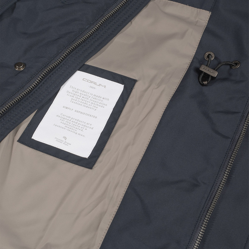 کاپشن مردانه، دارای سه جیب بیرونی در پیش و یک جیب داخلی، پیش کار دکمه های پرچی، پارچه ضد نفوذ آب و باد، آستر داخلی ضد آب