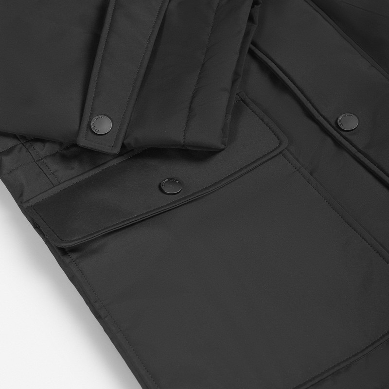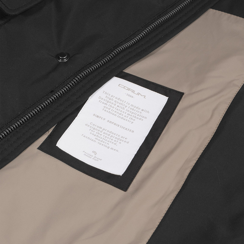 کاپشن مردانه، دارای سه جیب بیرونی در پیش و یک جیب داخلی، پیش کار دکمه های پرچی، پارچه ضد نفوذ آب و باد، آستر داخلی ضد آب