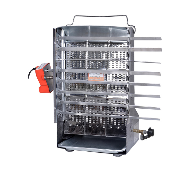 دارای بست گاز . ولوم کم و زیاد.سیخ جوجه و سیخ کباب .موتور جوجه گردان