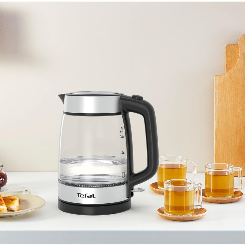 ظرفیت 1.7 لیتر، طراحی و متریال شیشه ، 2200 وات، فیلتر رسوب آهک قابل جابجایی ، نشانگر سطح آب، پایه چرخشی 360 درجه، نور ال ای دی ، بخش جمع آوری سیم برق، چراغ نشانگر، توقف خودکار