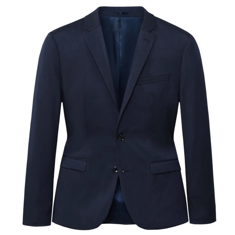 کت مردانه برند برنو بنانی آلمان که در تصویر مشاهده میشود، ظاهری شیک و کلاسیک دارد. این کت به رنگ آبی تیره (نفس) طراحی شده است و به نظر میرسد که با کیفیت عالی و متریال مناسب برای استفاده روزانه یا مراسم رسمی باشد.