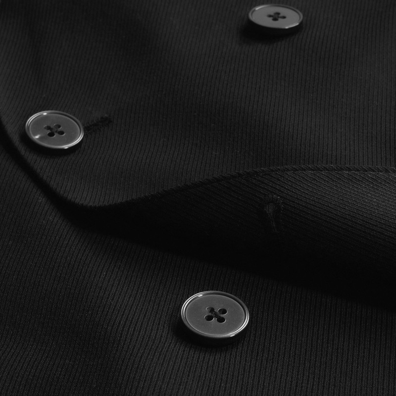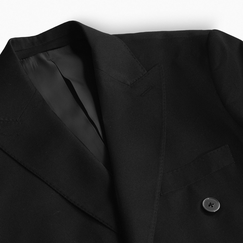 کت تک دبل برست، دو چاک در پشت، دارای دو جیب پاکتی و یک جیب روی سینه جهت استفاده از پوشت، داخل تمام آستر