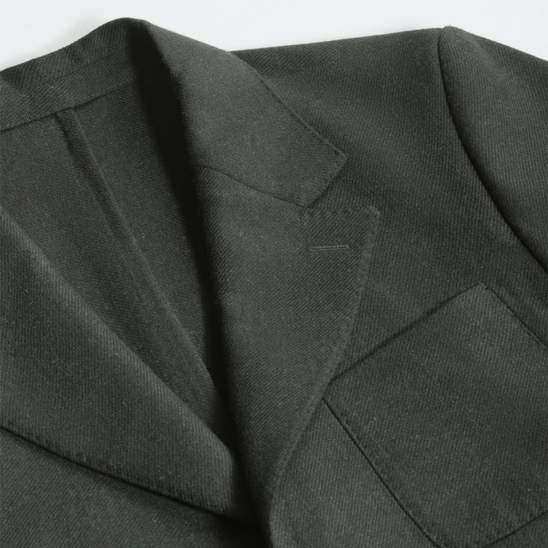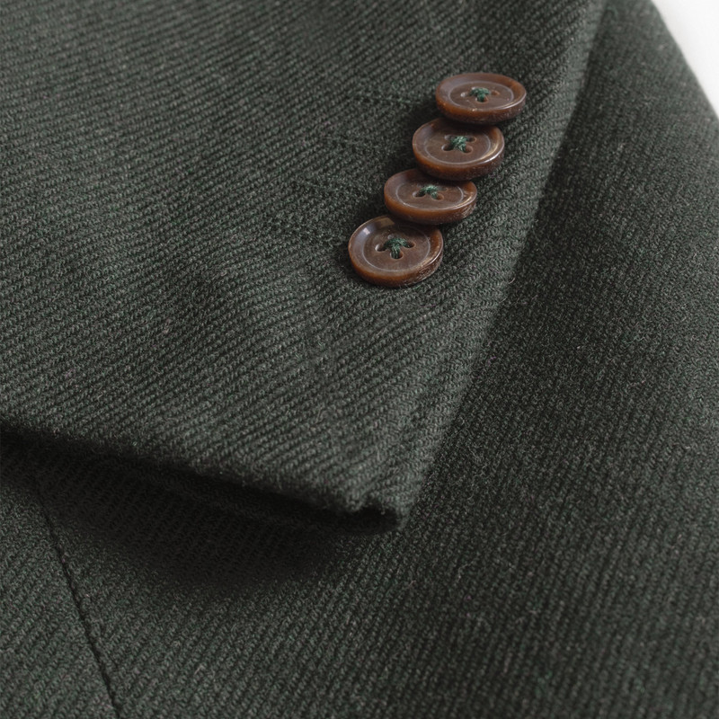 کت تک دو دکمه، دارای دوخت تزئینی بانتو، دو چاک در پشت، دارای دو جیب پاکتی و سه جیب داخلی، طراحی به صورت بدون آستر