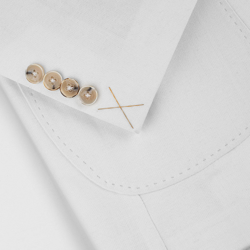کت مردانه دو دکمه لینن، الیاف خنک و سبک، استایل Drop-6، دارای دو جیب پاکتی و یک جیب روی پیش سینه جهت استفاده از پوشت، دارای دو چاک در پشت، بدون آستر داخلی