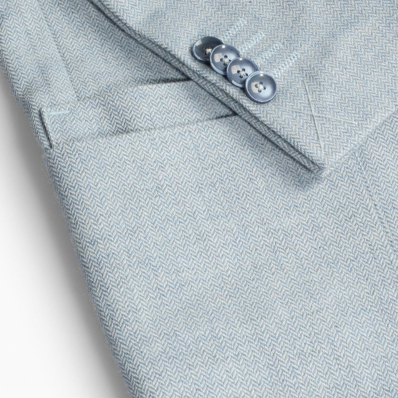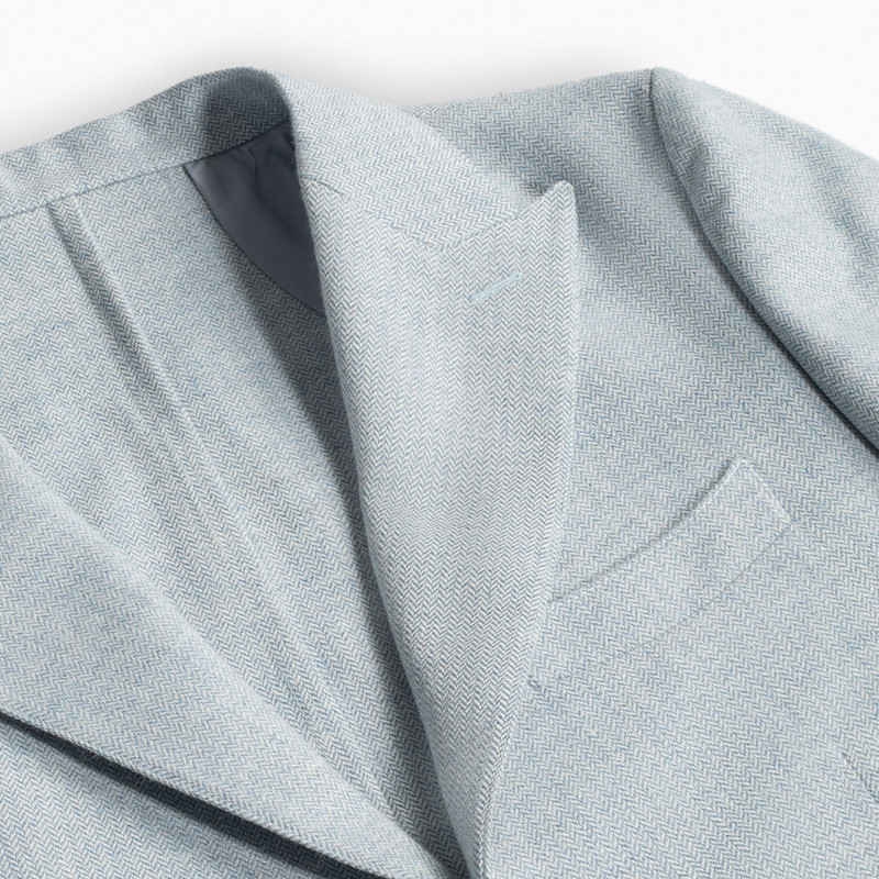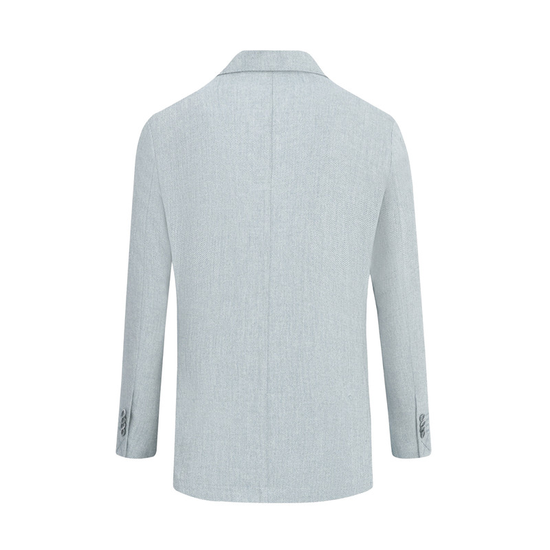 کت تک دو دکمه، دو چاک در پشت، دارای دو جیب و یک جیب روی سینه جهت استفاده از پوشت، طراحی به صورت بدون آستر
