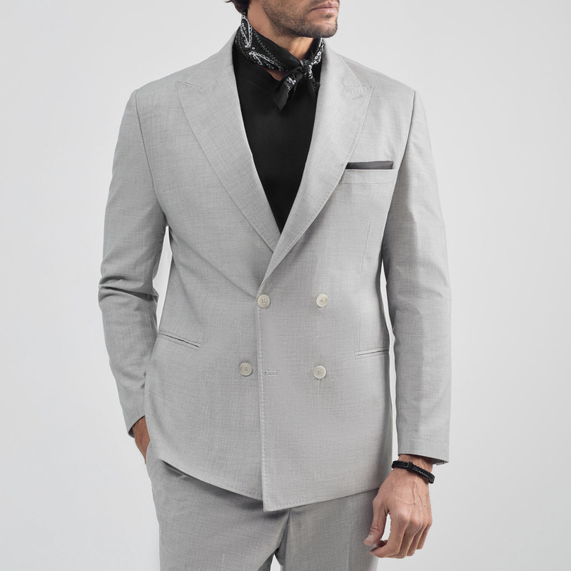 کت تک مردانه دبل برست/استایل Drop-6/دو چاک در پشت/دارای جیب روی پیش سینه جهت استفاده از پوشت/دارای ۲٪ اسپاندکس جهت راحتی بیشتر/داخل تمام آستر