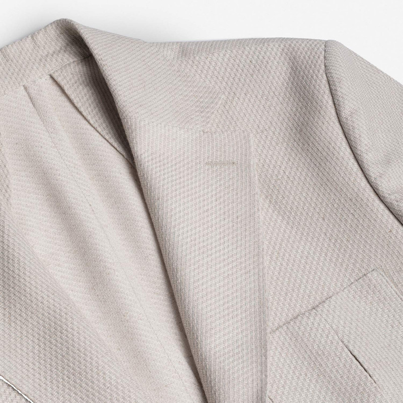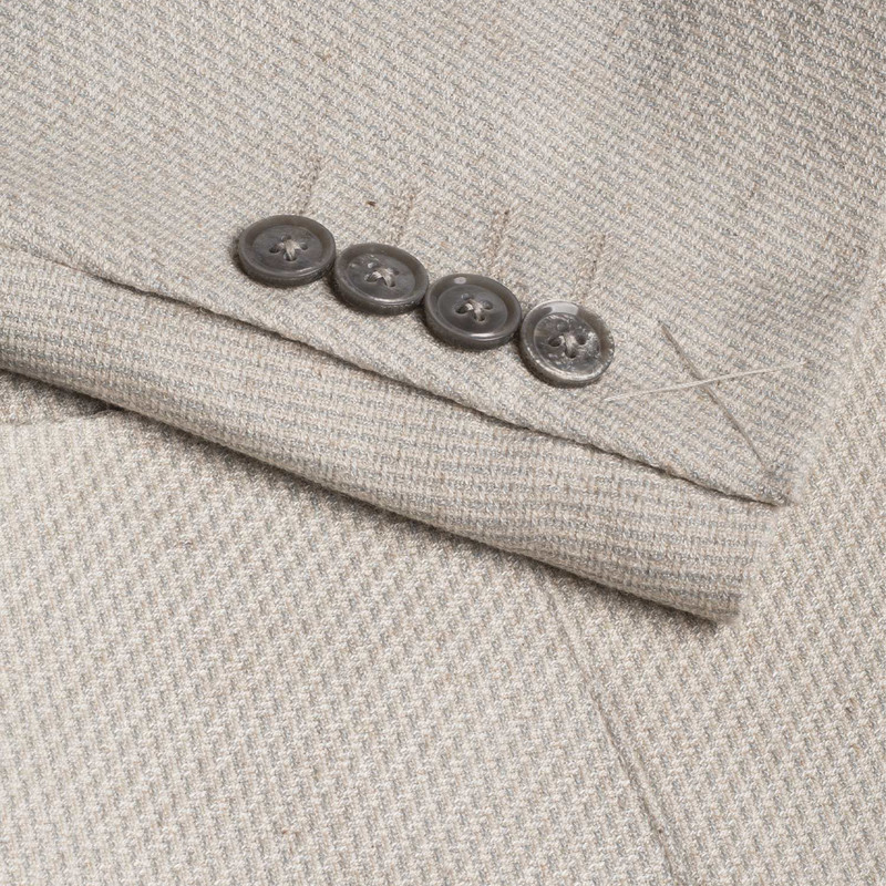 کت دو دکمه، دو چاک در پشت، دارای دو جیب پاکتی و یک جیب روی پیش سینه جهت استفاده از پوشت، بدون آستر/استایل Drop-6