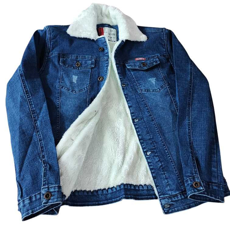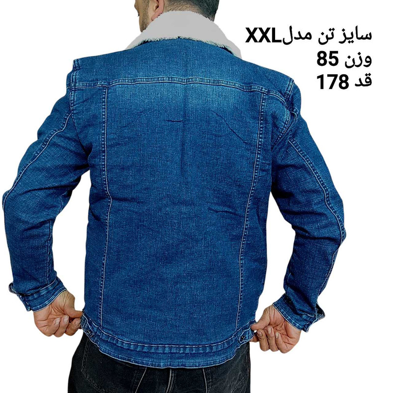 کت جین مردانه مدل خزدار کد 41110 رنگ آبی یخی