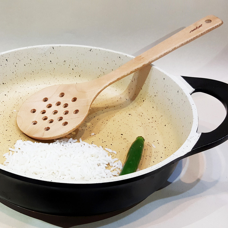 پس از هر بار استفاده و قبل از اینکه مواد غذایی بر روی سطح چوب خشک شوند ، آن را با آب گرم و مایع ظرفشویی بشویید . (از خیساندن ابزار چوبی برای مدت طولانی بپرهیزید تا دوام آنها بیشتر شود )