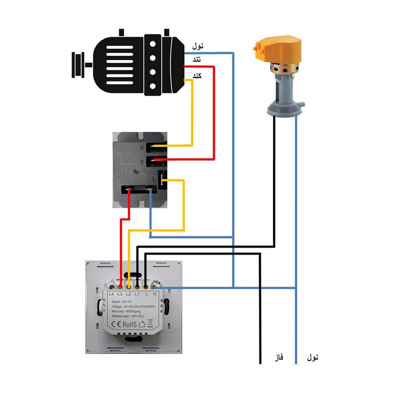 دفترچه راهنما و پیچ اتصال و یک عدد رله