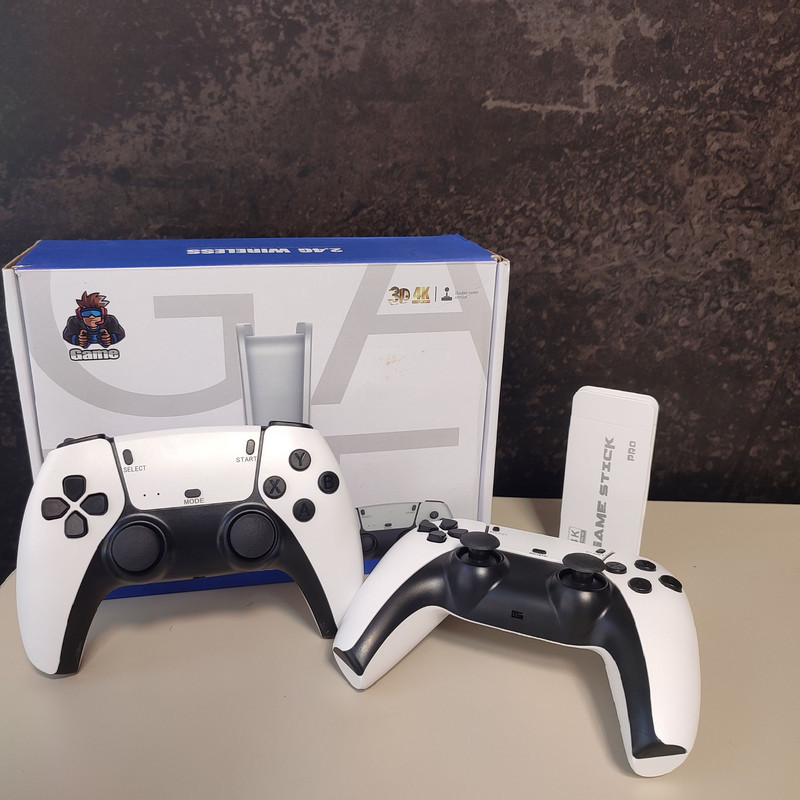 کنسول بازی دانگل بلوتوثی دسته دو عدد دسته کابل رابط HDMI کابل یو اس بی برای تغذیه دستگاه دارای استیک و شک و جوی می باشد دارای چندین هزار بازی نوستالژیک از 23 کنسول خاطره انگیز قدیمی دارای شبیه ساز کنسول های