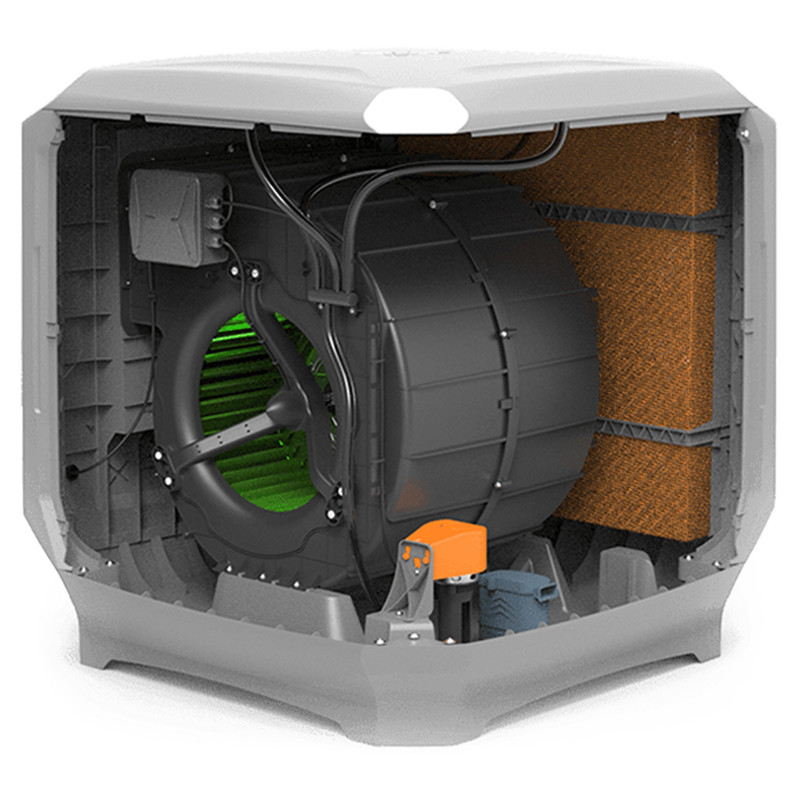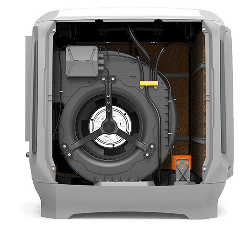 کنترلر دیجیتال و ترموستات هوشمند داخلی، دمای محیط را پایش کرده و سرعت فن و پمپ آب را بهطور خودکار تنظیم میکند. این سیستم موجب کاهش مصرف انرژی و افزایش آسایش کاربر میشود.