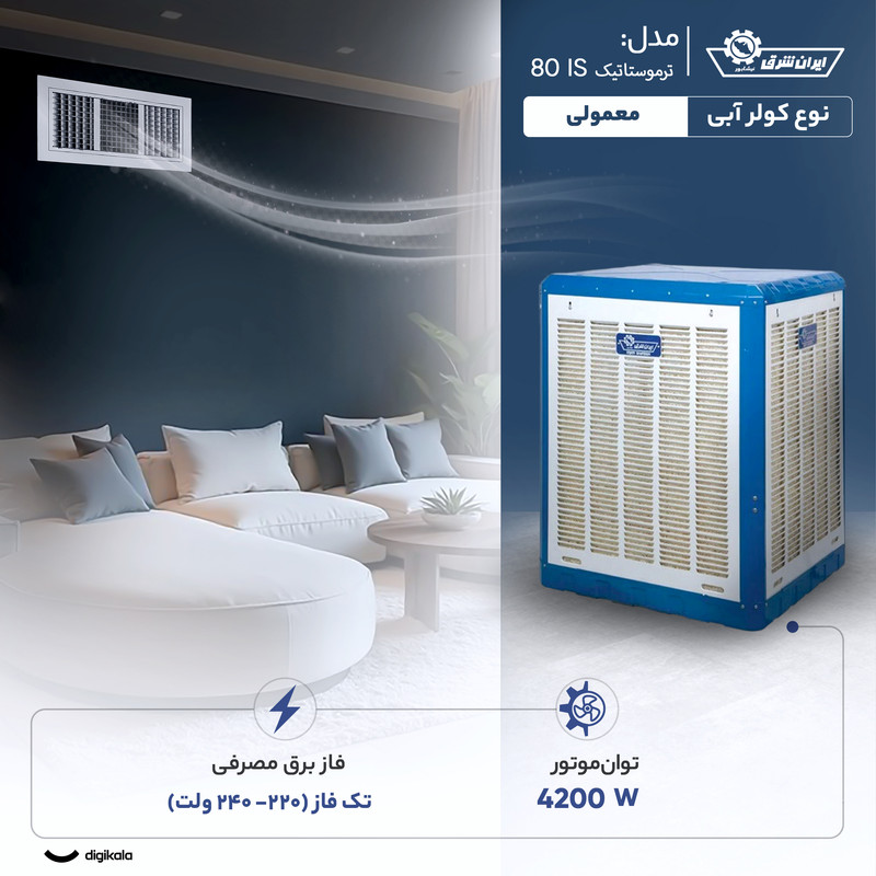 کولر آبی 8000 ایران شرق مدل ترموستاتیک IS 80