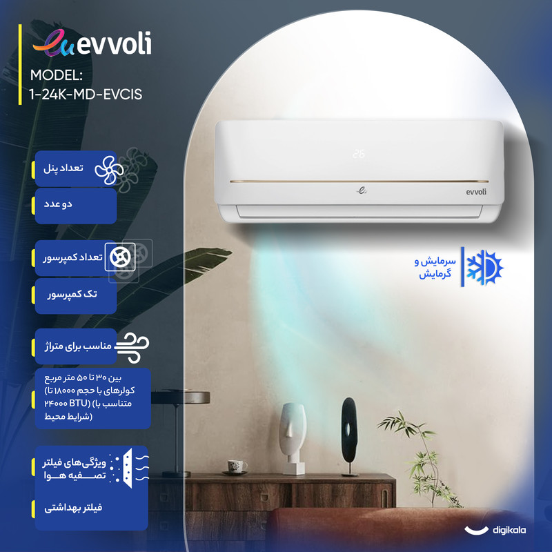 کولر گازی اسپلیت دیواری 24000 دور ثابت ایوولی مدل EVCIS-24K-MD-1