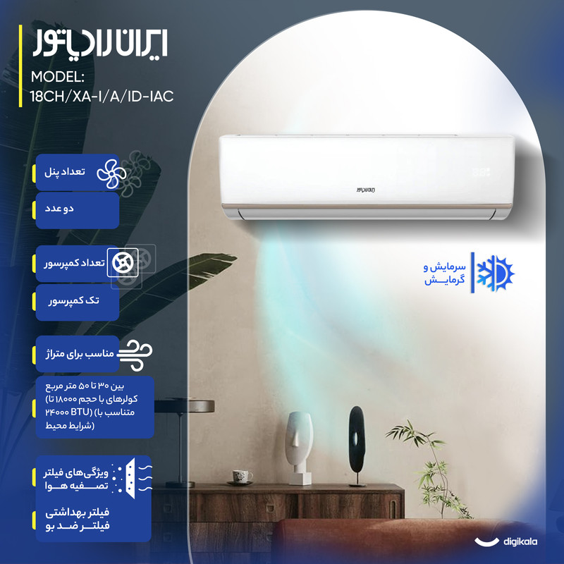 کولر گازی اسپلیت دیواری (Split) 18000 اینورتر ایران رادیاتور مدل IAC-18CH/XA-I/A/ID
