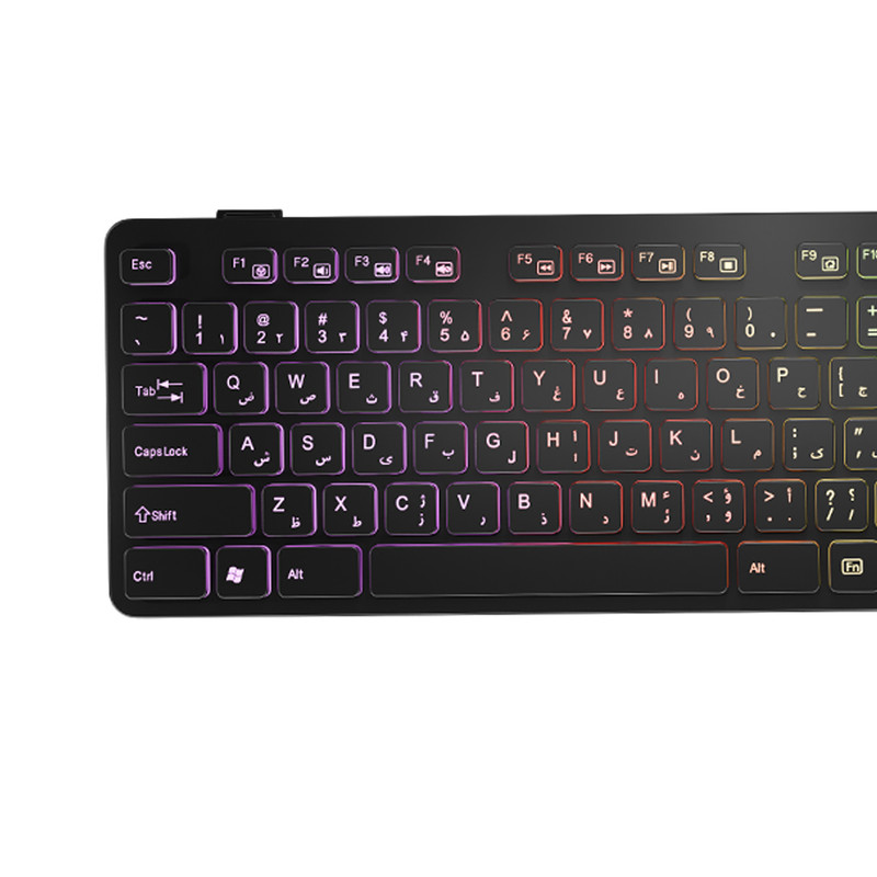 یکی از ویژگیهای خاص این کیبورد، نورپردازی پسزمینه LED است که امکان تایپ راحتتر را در محیطهای کمنور فراهم میکند.