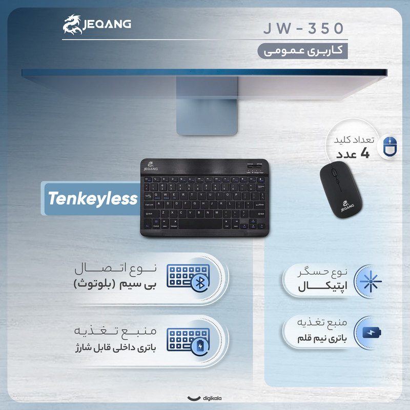 کیبورد و ماوس جکنگ مدل JW-350، سوییچ ممبران، Tenkeyless