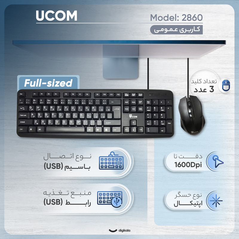 کیبورد و ماوس یوکام مدل 2860، سوئیچ ممبران، Full-size