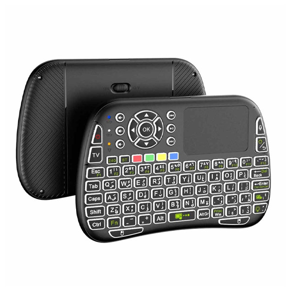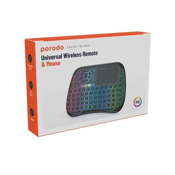 کیبورد و موس بیسیم پرودو مدل MWKTC با ابعادی بسیار کوچک و جمع و جور ، با چند عملکرد مختلف به عنوان کیبورد ، موس و ریموت کنترل نیز قابل استفاده و به راحتی قابل حمل است که به صورت بیسیم طراحی شده و میتوانید هم با دانگل و هم با بلوتوث نیز از آن استفاده کنید .