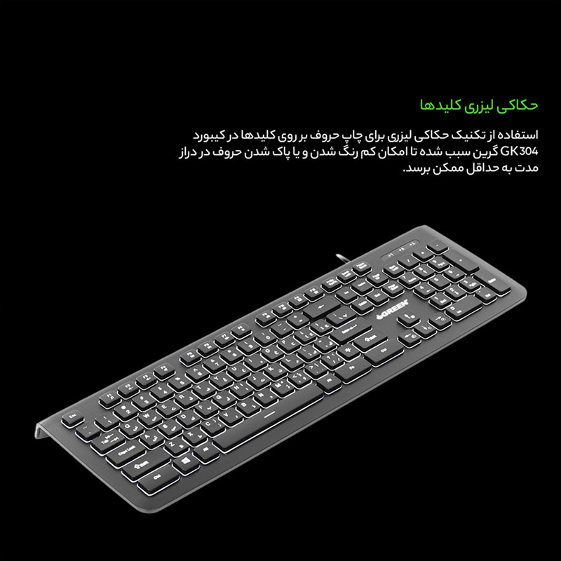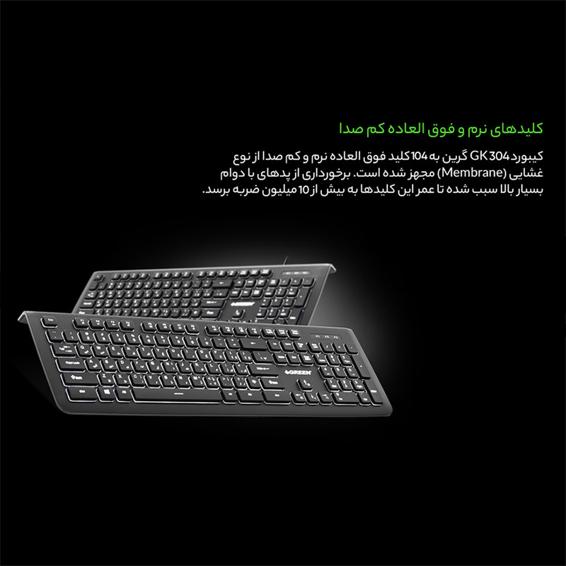 کیبورد گرین مدل GK304، سوییچ ممبران، Full Size، نورپردازی تک رنگ