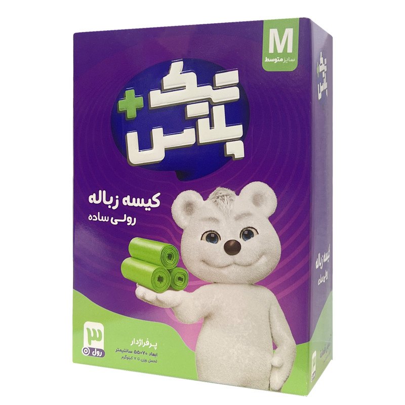 کیسه زباله تیک پلاس مدل رولی سه قلو بسته 42 عددی