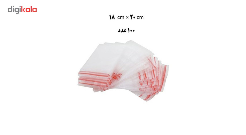 شامل 100 عدد کیسه زیپ دار، با ابعاد 20 در 18 سانتی متر