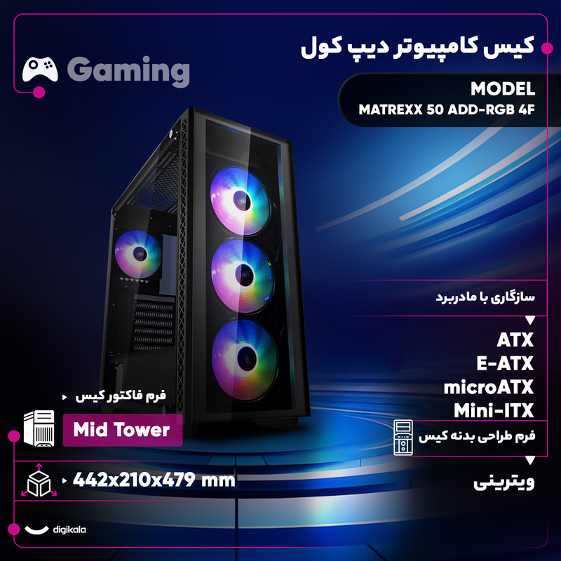 کیس کامپیوتر دیپ کول مدل MATREXX 50 ADD-RGB 4F