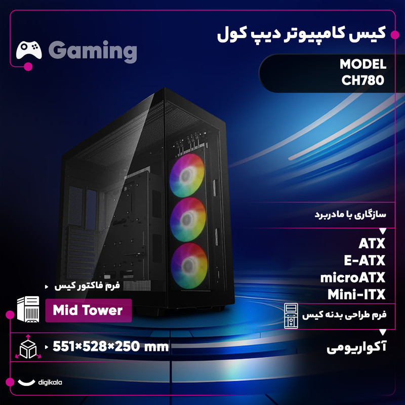 کیس کامپیوتر گیمینگ دیپ کول مدل CH780