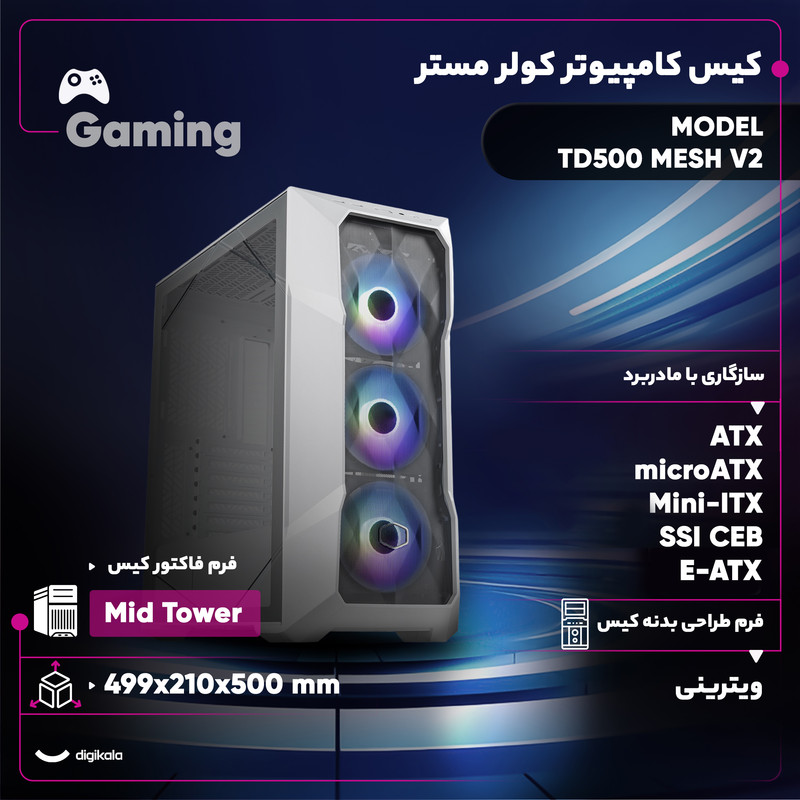 کیس کامپیوتر گیمینگ کولر مستر مدل TD500 Mesh V2