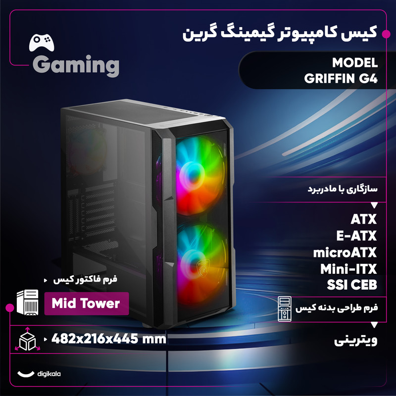 کیس کامپیوتر گیمینگ گرین مدل GRIFFIN G4