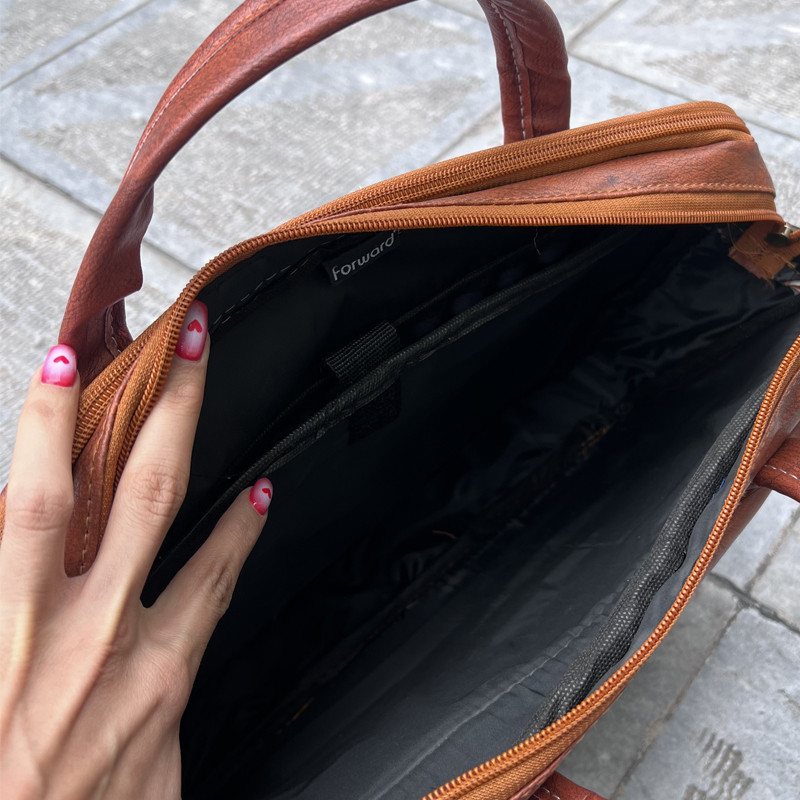 دارای یک محفظه اصلی جهت قرار دادن وسایل روزانه , کتاب , دفتر و سایر وسایل دارای یک جیب میانی جهت حمل وسایل روزانه دارای دو جیب دکمه ای در قسمت جلویی کیف دارای یک جیب زیپی در قسمت پشتی کیف دارای بند بلند قابل جدا شدن و قابل تنظیم همراه با نواردوزی دوبل جهت حمل دوشی دارای دو دسته جهت حمل دستی دارای جنس بدنه چرم صنعتی درجه یک دارای آستر با کیفیت در تمامی قیمت های داخلی