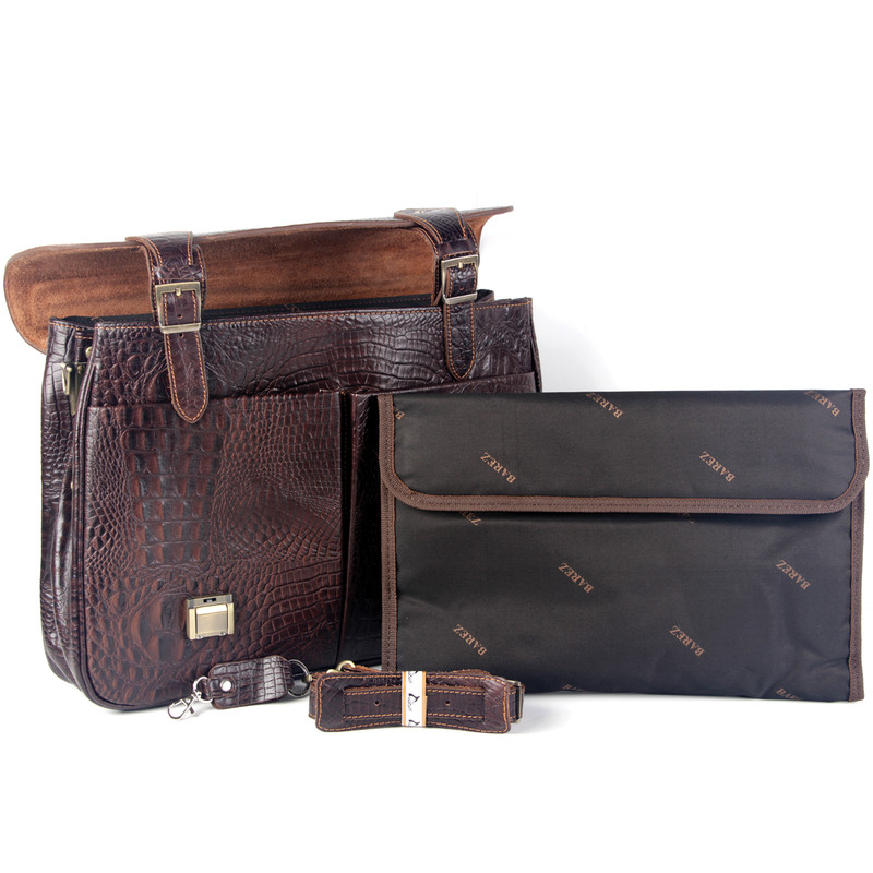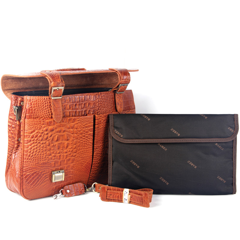 کیف اداری کلاسیک چرم بارز کد DL3.KO - مناسب برای اقشار مختلف جامعه اعم از مدیران ، اساتید و دانشجویان ، کارمندان و ... - جهت استفاده رسمی و روزمره - دارای جای کارت داخل کیف و قفل رمزدار - ساخته شده از چرم طبیعی گاوی طرح کروکودیل - یراق آلات ، کتان اعلاء و نخ درجه یک